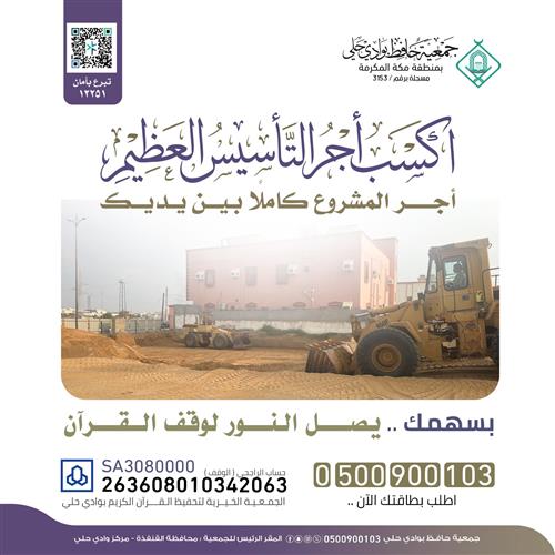 «ساهم في تأسيس وقف خيري يعود ريعه بشكل دائم لخدمة القرآن وبرامج الجمعية. مشاركتك في هذه المرحلة التأ...